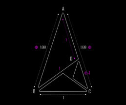 The most remarkable aspect lies in the spaces created between these three triangles. Here, a new isosceles triangle emerges, similar in proportion to the original larger triangle, pointing toward the upper right in a growth-oriented composition. This follows the golden triangle ratio, embodying both mathematical beauty and the logical precision expected of an AI development company, while simultaneously expressing future expansion.