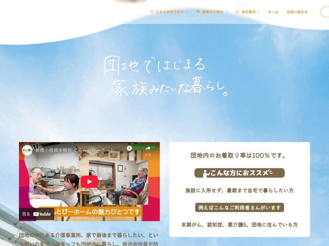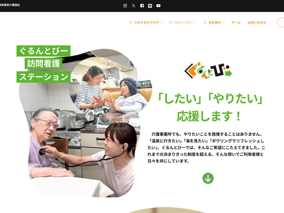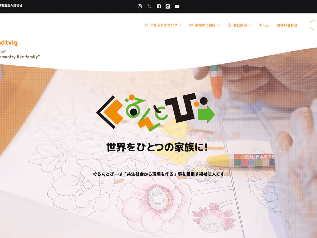 Website and creative production case study for the welfare organization “Guruntobi,” based in Fujisawa City and Kamakura City, Kanagawa Prefecture. Under the motto “Make the world one big family!”, Guruntobi continues to lead the way in the care industry with unconventional thinking and initiatives. The goal was to visualize on the website their “unconventional” and even “meddlesome” approach: transcending the boundaries between supporters and supported, fostering a community where everyone in the neighborhood supports each other like family. U-MA achieved the relaunch in just four months from start to finish, handling not only graphic design and site architecture but also migrating approximately 700 WordPress pages. This speed earned praise from Mr. Sugawara, Guruntobi's representative. U-MA's strength lies in delivering projects quickly, enabling proposals that undercut market rates.